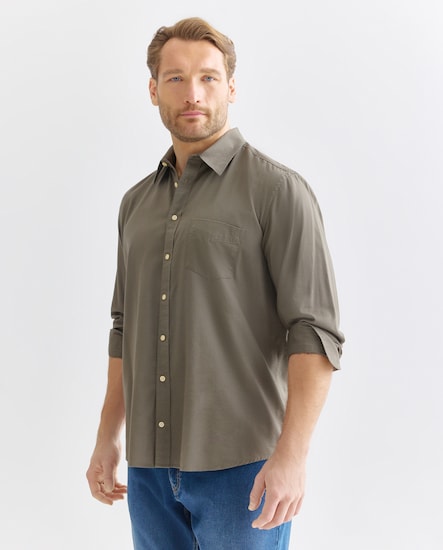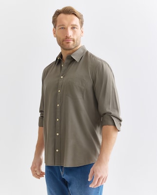 DustinCamisa Casual de Tamanhos Grandes em Sarja com Manga Comprida Lisa e Corte Regular.3 CoresAdicionar