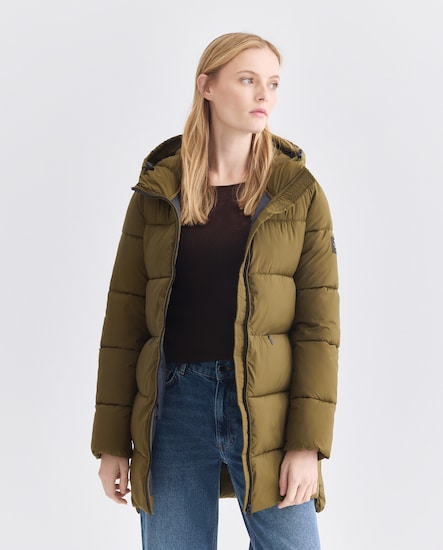 Sobretudo Acolchoado com Fecho de Correr, Capuz e Bolsos Laterais