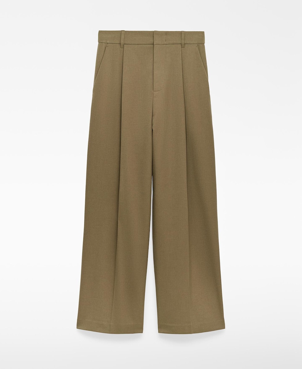 Nos acessórios, a tríade de malas responde a todos os cenários: a mala de mão numa cor divergente mas dentro da mesma paleta terrosa, o saco de camurça prático e cool, e a tiracolo sofisticada que dá o tom a qualquer saída noturna. Três peças de bijuteria estrela completam a coleção: argolas esculturais em prateado, um colar de elos com um toque divertido e um choker statement.