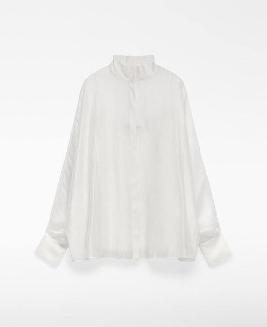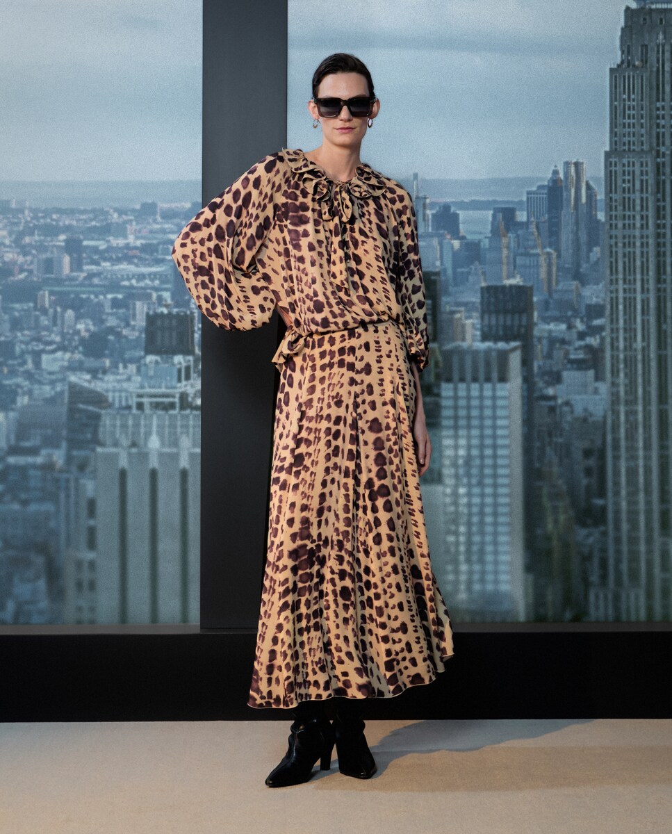 Optamos pelas calças de pele que pedem atitude, a camisa semitransparente que joga com a sedução subtil, a caxemira de gola subida que traduz conforto refinado, e a camisa de laçada em ganga que, juntamente com as jeans, cria um total look irreverente. O clássico renasce nas calças de alfaiataria, enquanto a feminilidade ganha expressão em movimento com o vestido estampado acetinado elegante e a saia estampada.