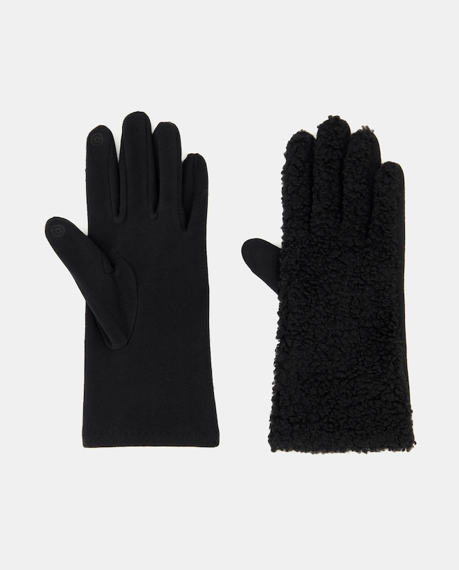 Luvas com Detalhe de Pompom e em Tecido - Preto