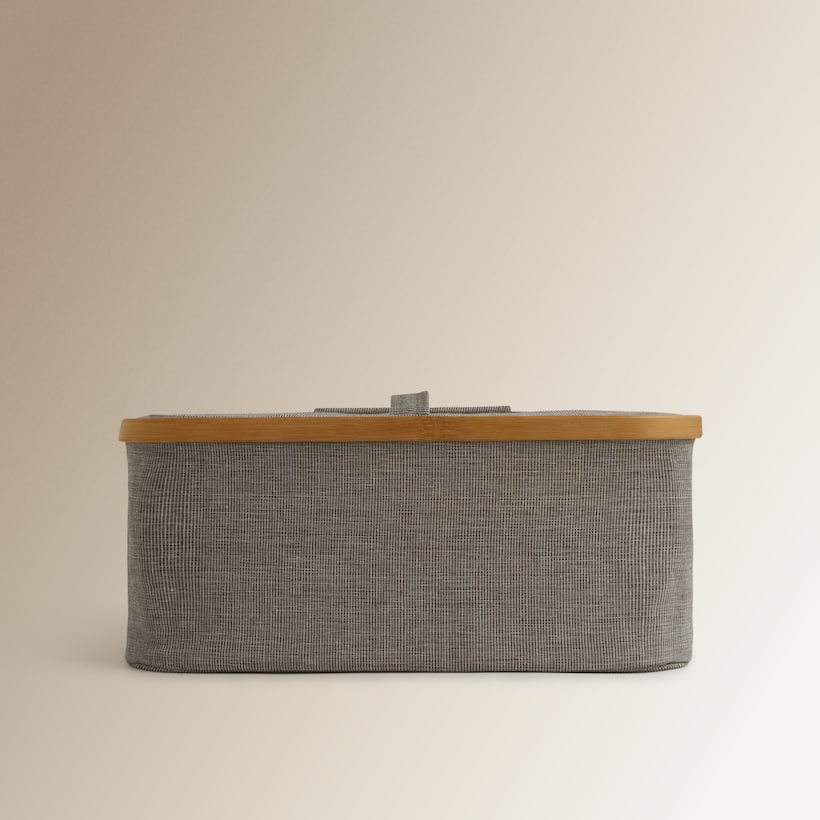 Cesta Organizadora com Tampa Tecido + Bambu Room