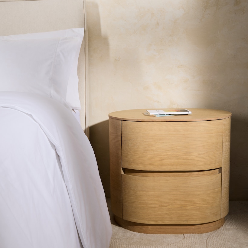 Mesa de Cabeceira com 2 Gavetas de Madeira de Carvalho Owen