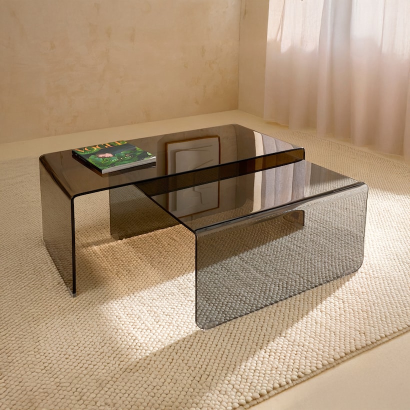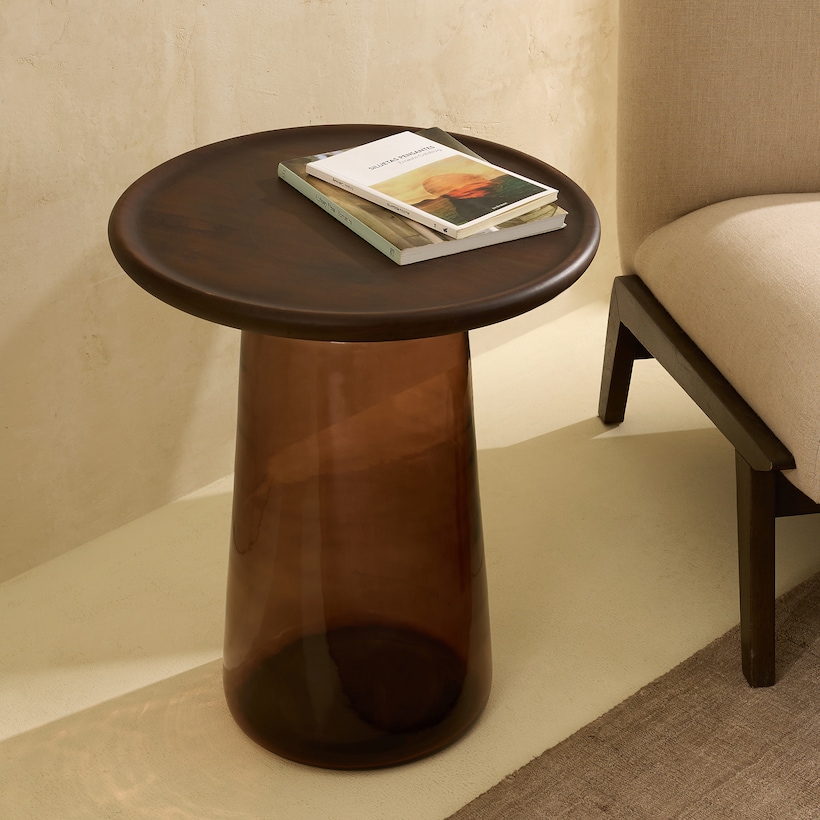 Mesa Auxiliar de Vidro e Madeira de Nogueira Tampere