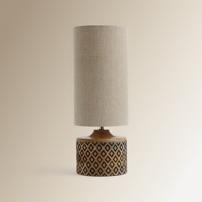 Abajur cilíndrico branco em cru de linho 100% Nimes