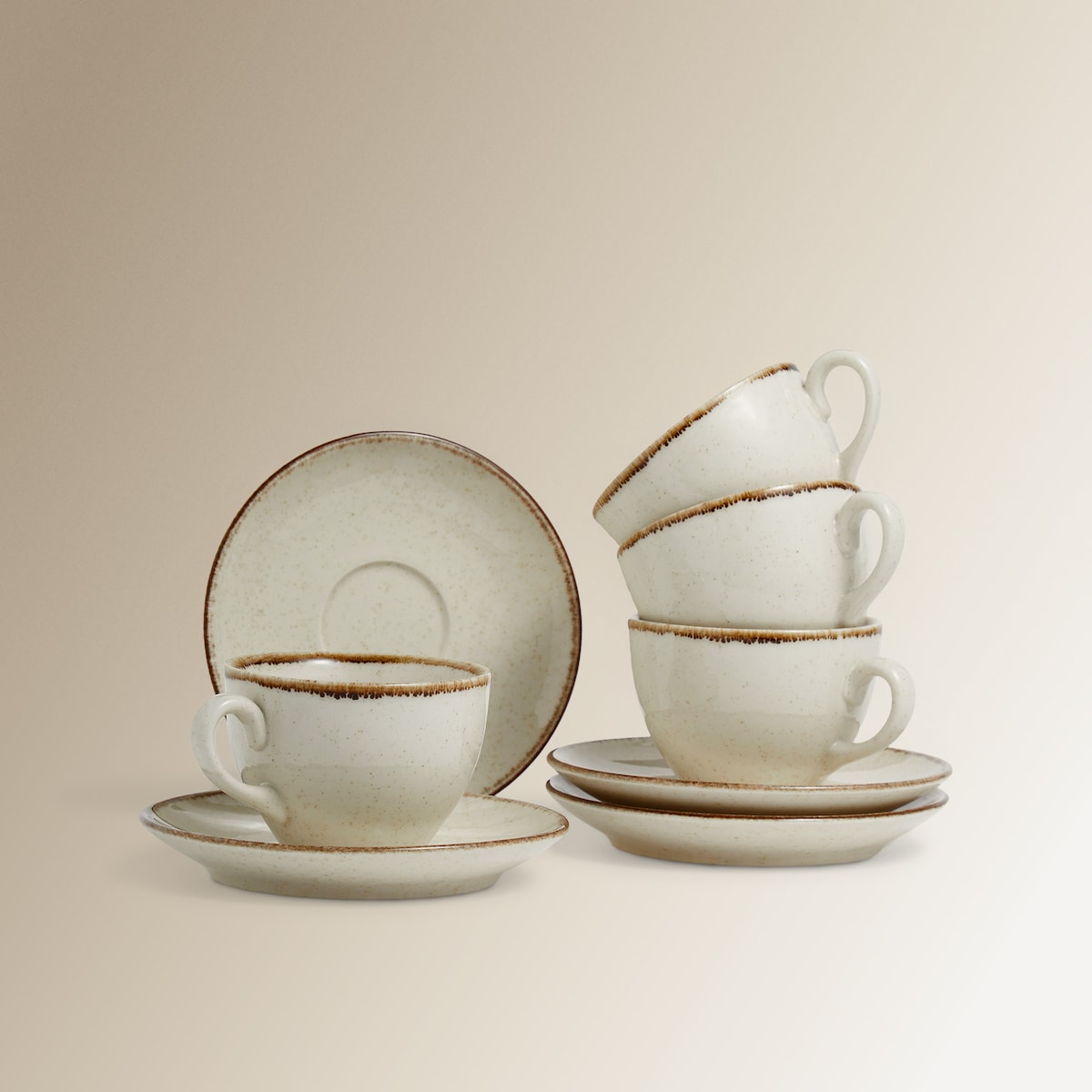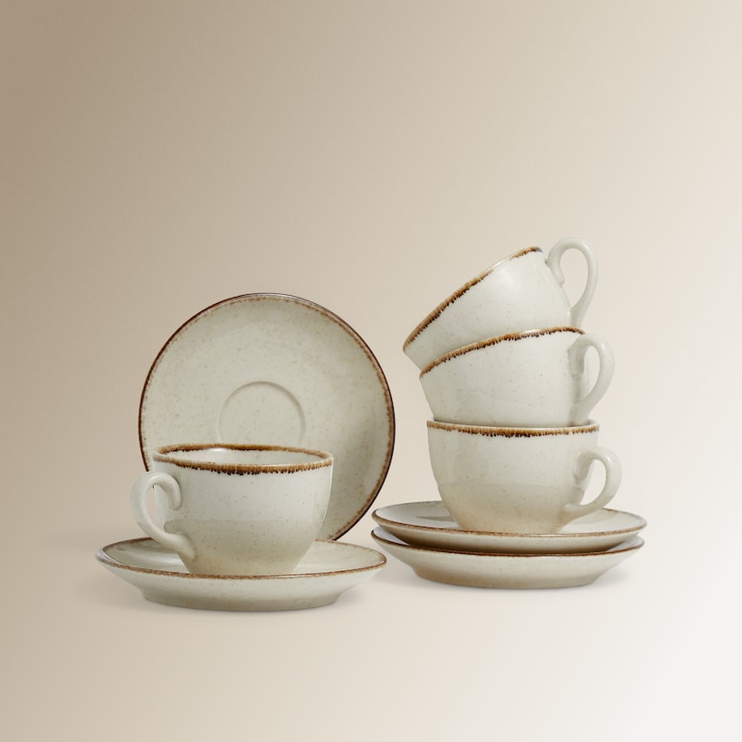 Conjunto de 4 Chávenas de Chá com Pratos Coimbra - Bege