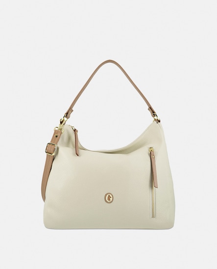 Porta-Moedas Duplo com Porta-Chaves em Pele e Lona - Castanho