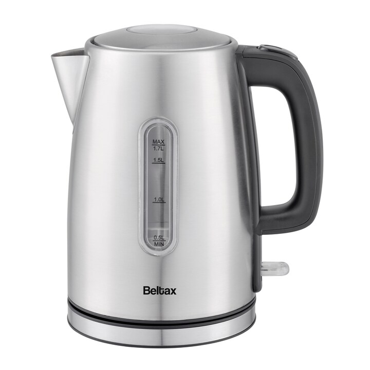 Jarro Elétrico Beltax BEK7311. Capacidade: 1.7L. Potência: 2200W. Corpo em aço inoxidável. Janela visualização dupla