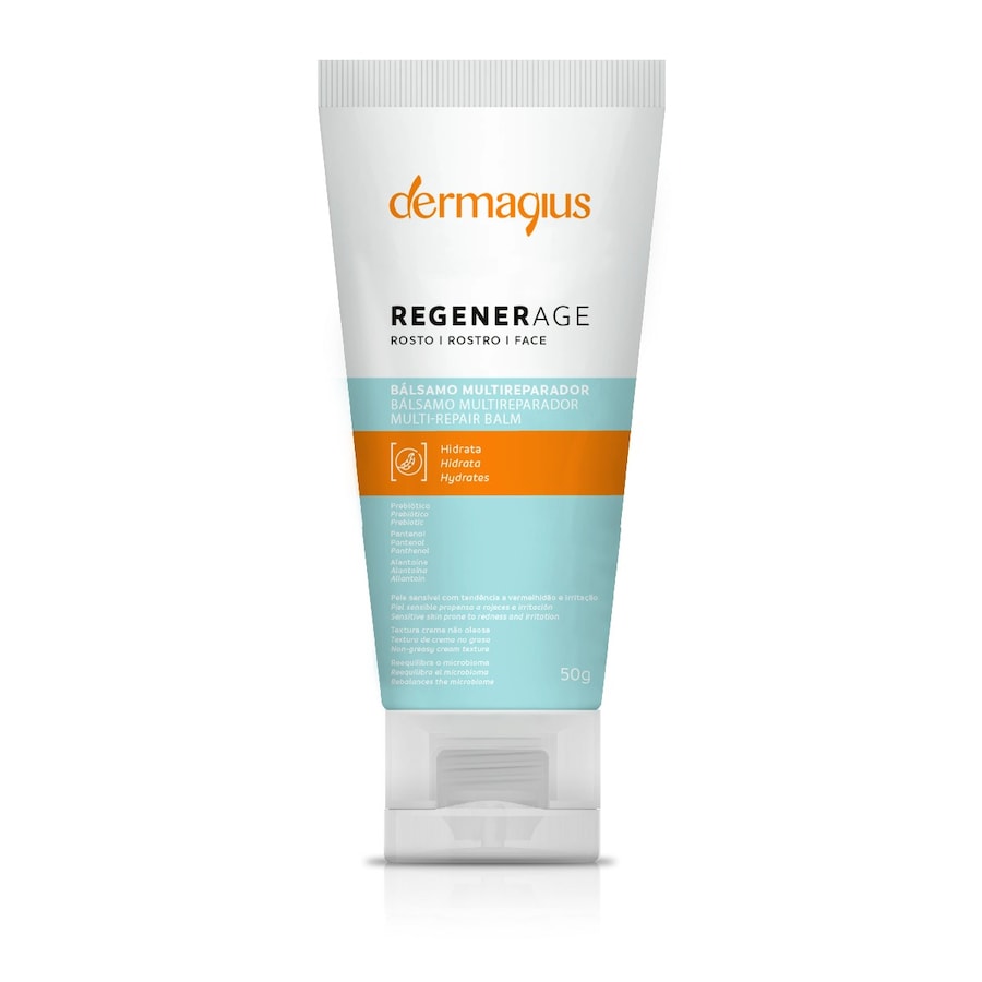 Regenerage Face é um creme facial desenvolvido para promover a regeneração e hidratação da pele. A sua fórmula contém ativos como Bioecolia, um prebiótico que reequilibra o microbioma cutâneo e fortalece a barreira da pele, Alantoína, que acelera a regeneração e suaviza, e Manteiga de Karité, que proporciona uma hidratação profunda. Este creme é ideal para quem procura um cuidado intensivo para a pele, melhorando a sua elasticidade, suavizando rugas e linhas finas, e promovendo uma aparência mais rejuvenescida e saudável. Regenerage Face ajuda a restaurar a pele, proporcionando-lhe conforto e proteção duradoura. Para quem é indicado O hidratante de pele sensível Regenerage Face é indicado para pessoas que possuem alergias, dermatite atópica, rosácea ou outras condições que tornem a pele sensível.Além disso, é indicado para peles sensibilizadas momentaneamente por excesso de exposição sola ou procedimentos estéticos, como peeling e laser.