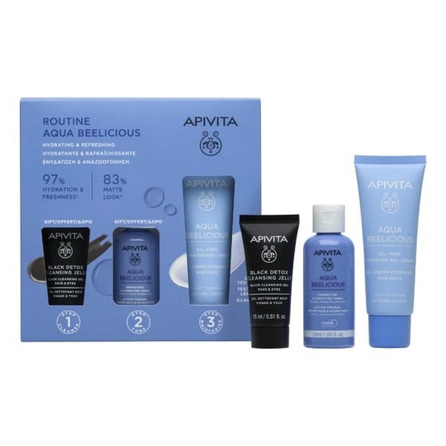 Gel de Limpeza Detox Preto com própolis e carvão ativado (15ml): Um gel de limpeza refrescante que limpa e remove a maquilhagem. AQUA BEELICIOUS Tónico de Hidratação com mel de flores, fusão de flores e prebióticos (50ml): Uma infusão aquosa e fresca que hidrata instantaneamente, suaviza as imperfeições e prepara a pele, respeitando o microbioma. AQUA BEELICIOUS Gel-creme Textura ligeira com mel de flores e fusão de flores (40ml): Um gel-creme leve que proporciona hidratação e frescura instantânea e duradoura, reequilibra a oleosidade da pele e matifica, sendo uma base de maquilhagem ideal. Adequado para pele oleosa e mista.