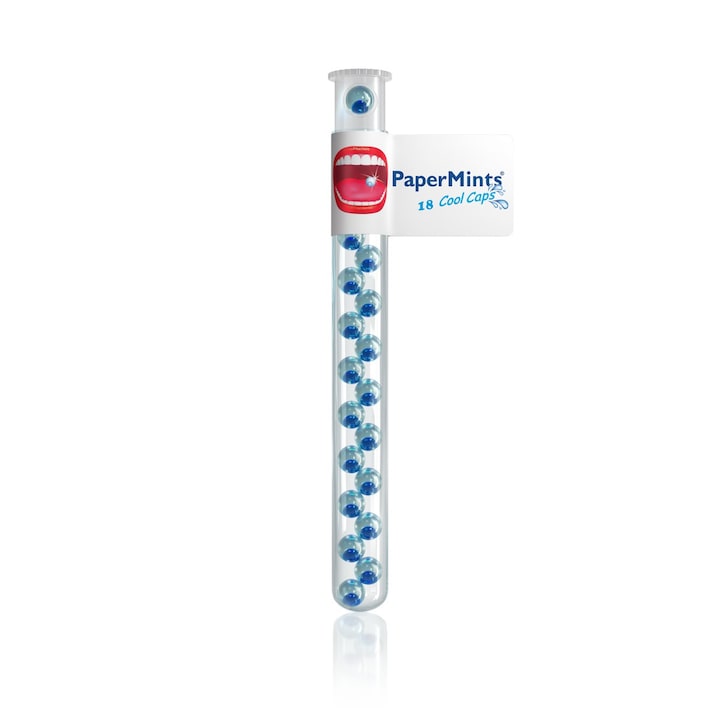 Coolcaps, é a ÚNICA cápsula dupla do mundo. Uma pérola contém 2 cápsulas líquidas. O exterior derrete na boca, o interior derrete no estômago, proporcionando um hálito fresco duradouro.