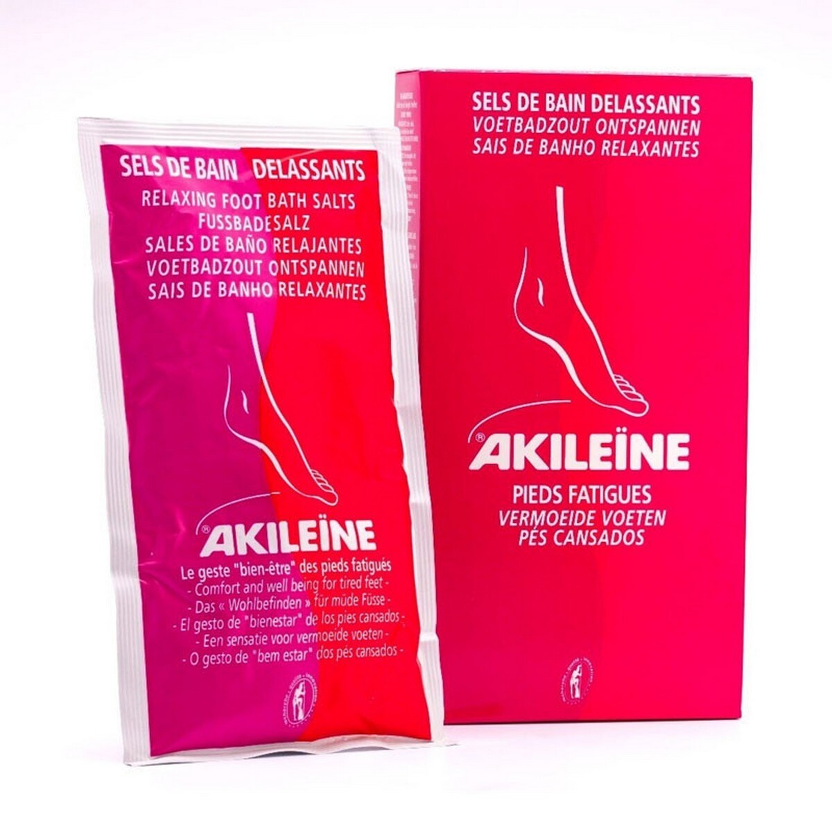 Akileïne Sais de Banho Relaxantes tonificam, aliviando a sensação de peso e fadiga dos pés. Limpam gentilmente e purificam. Os pés ficam mais leves, confortáveis e suaves. Combatem o mau odor.