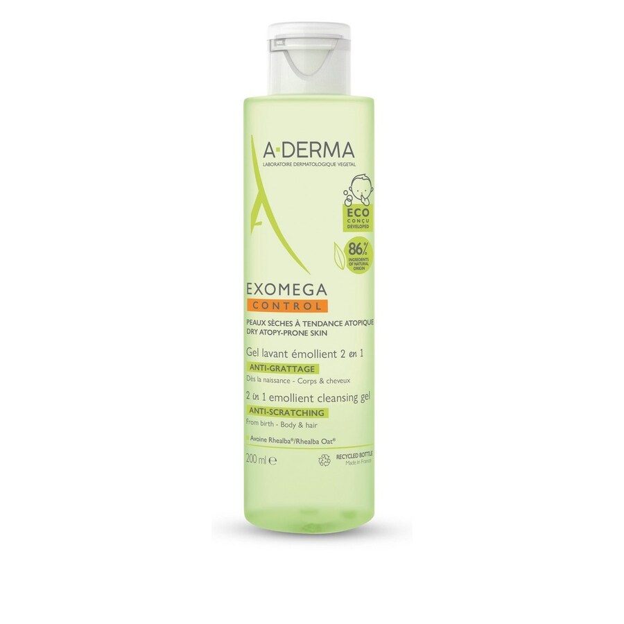 Graças à sua fórmula 2 em 1 BIODEGRADÁVEL* contendo 86% de ingredientes naturais, o gel de limpeza emoliente EXOMEGA CONTROL acalma a pele dos bebés e simplifica a vida dos pais.