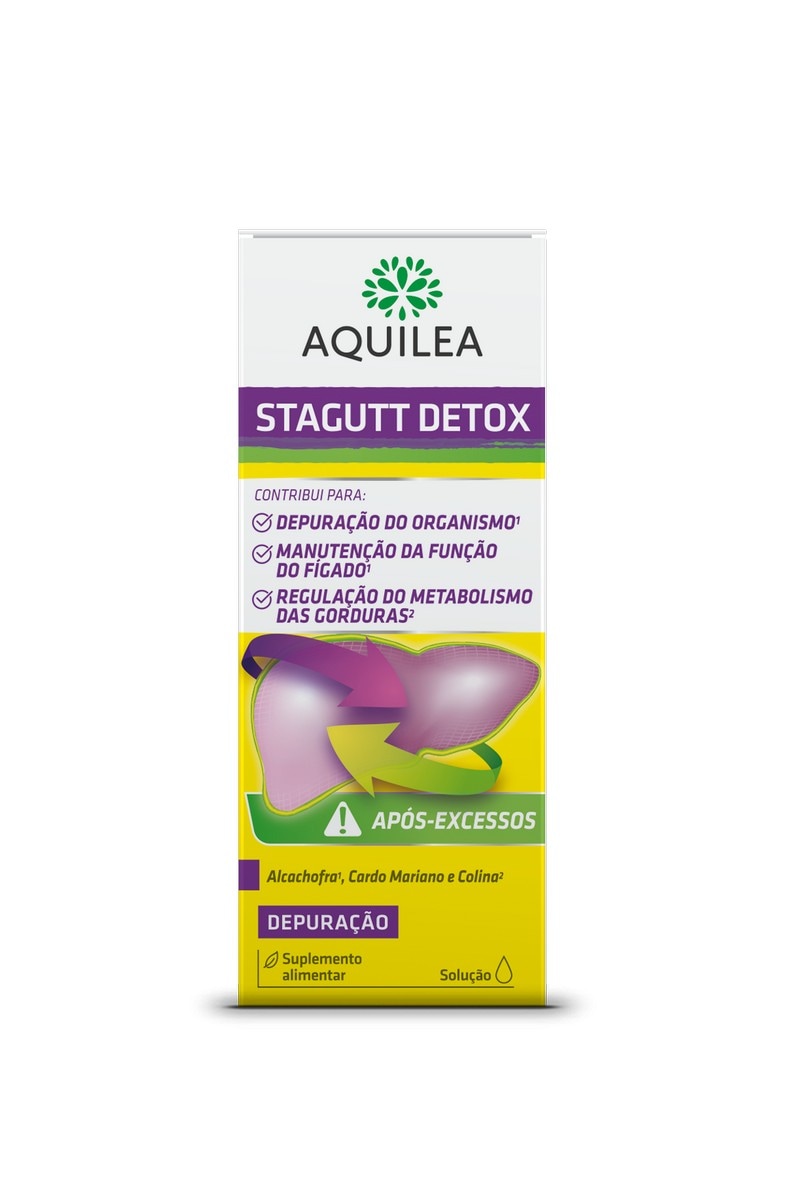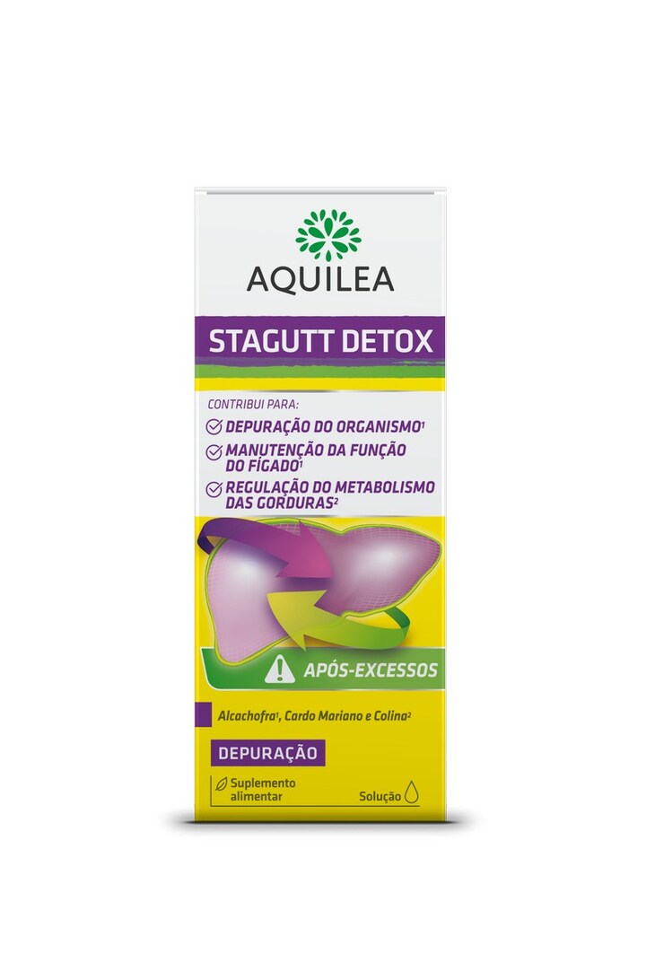 AQUILEA STAGUTT é um completo suplemento alimentar à base de plantas como a Alcachofra, Cardo Mariano, Salva e outras, contendo ainda Colina que contribui para o normal metabolismo dos lipidos e para a manutenção de uma função hepática normal.