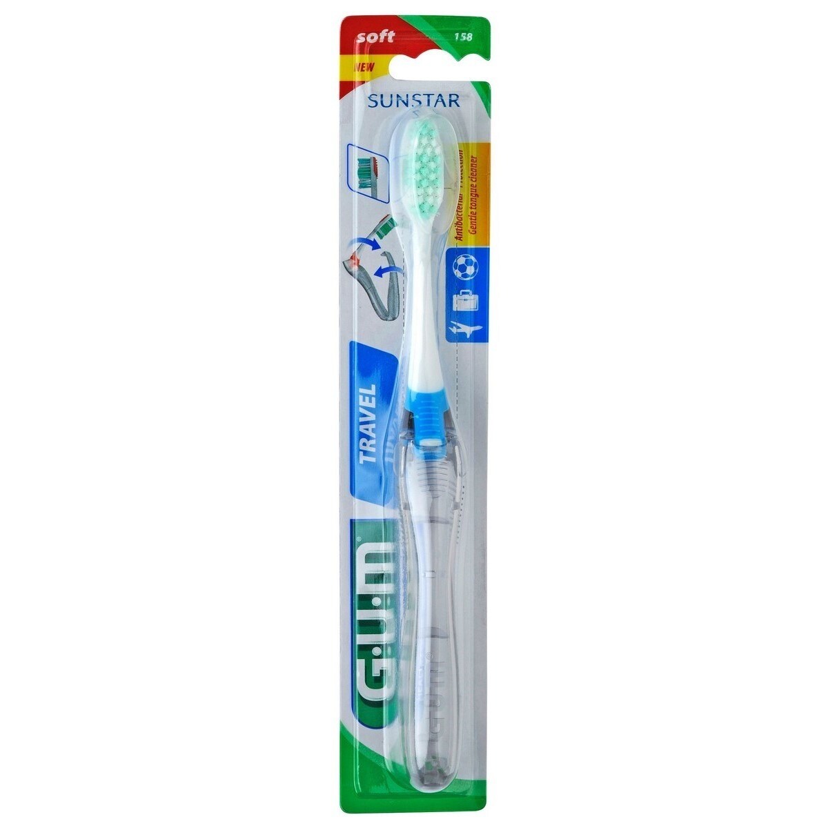 Design desdobrável: a cabeça da escova dobra-se convenientemente sobre o cabo, ficando protegida e impedindo que molhe o conteúdo da mala.