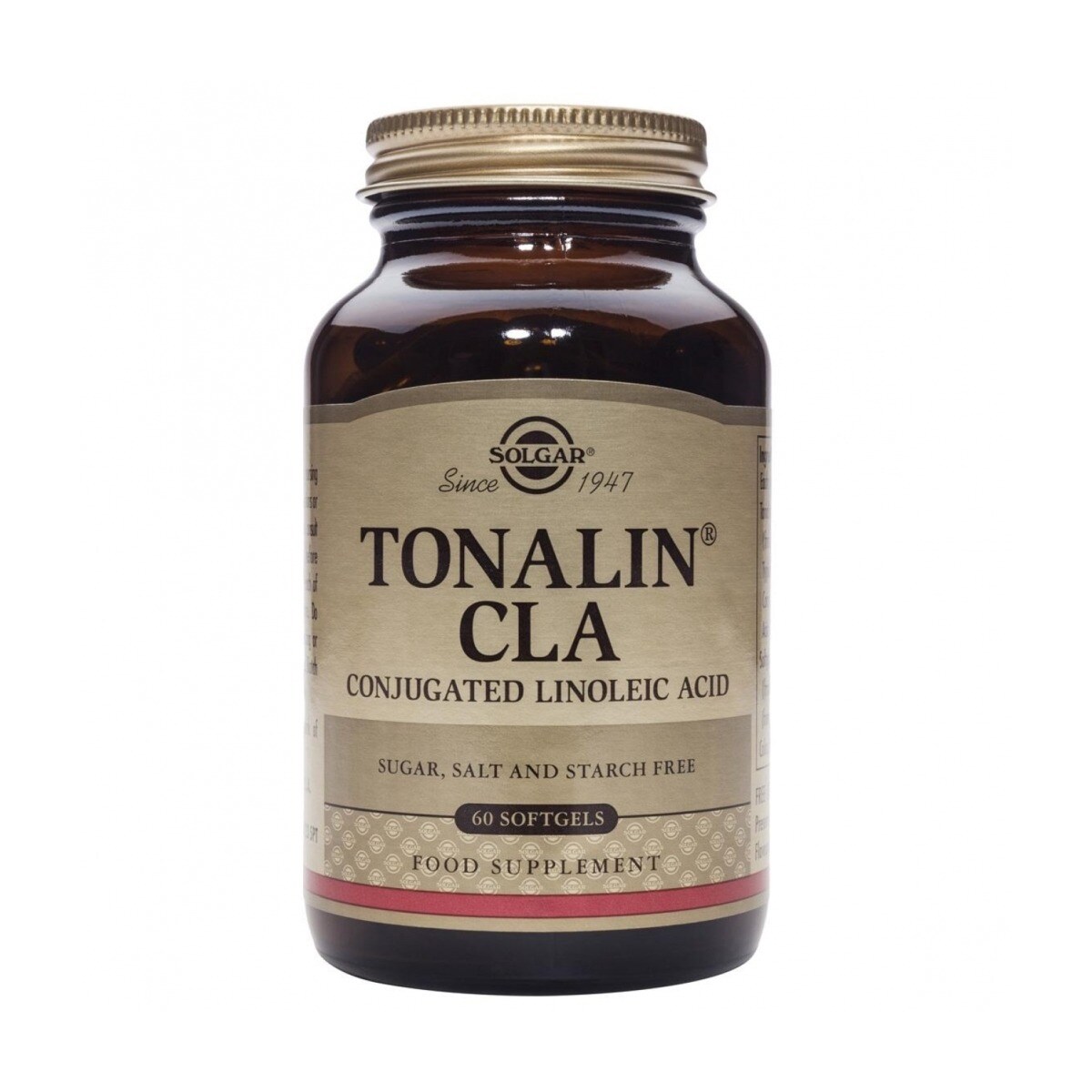 Tonalin® CLA da Solgar, é uma fórmula patenteada derivada de óleo de açafroa natural que contém os dois isómeros de CLA: cis-9, trans-11 e trans-1 O, cis-12. Estes são os isómeros biologicamente activos do CLA e aos quais são atribuídos os benefícios para a saúde, nomeadamente no que diz respeito à composição corporal.