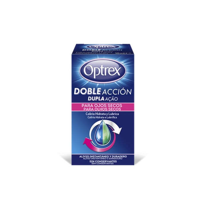 Optrex Colírio Dupla Ação Olhos Secos tem uma fórmula dupla ação sem conservantes especialmente desenvolvida para hidratar os olhos de forma instantânea e