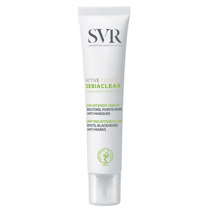 SEBIACLEAR ACTIVE TEINTE não só cobre como também atenua as imperfeições graças aos seus 2 princípios ativos dermatológicos:
