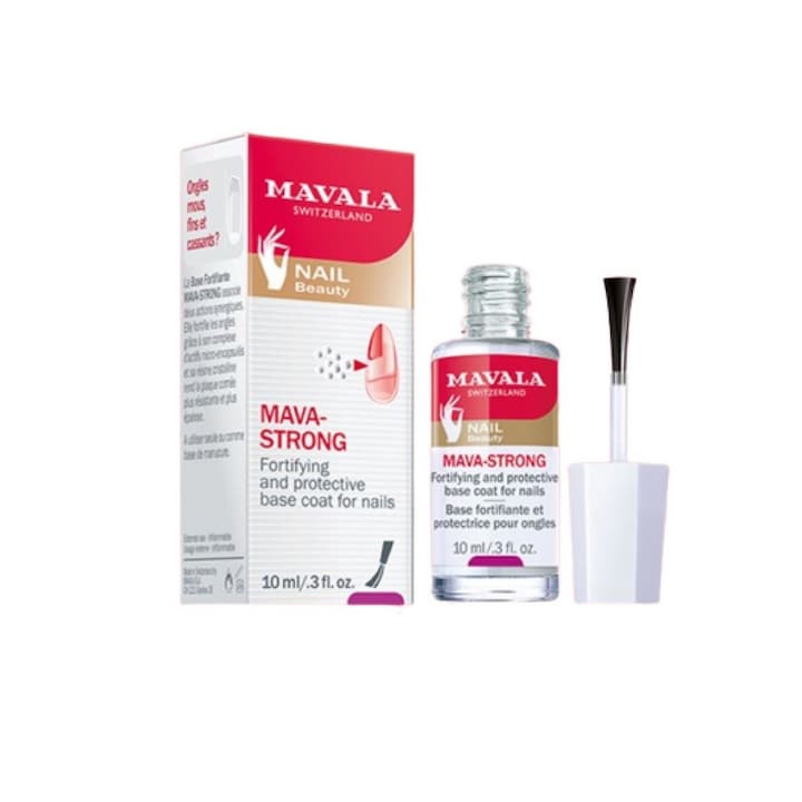 Mava-Stong é uma base fortificante forte que permite recuperar o aspeto normal e forte das unhas quebradiças e fracas. Combina duas ações que trabalham em sinergia: fortificar e proteger. É um verniz incolor e brilhante cujos ingredientes ativos combinam tecnicidade e eficiência para melhorar a qualidade das unhas, reforçando a sua estrutura. O seu complexo de ingredientes ativos micro encapsulados (óleo essencial de tea tree, vitamina E, proteínas vegetais hidrolisadas e arginina) fortalece as unhas e a sua resina Crystal torna a placa ungueal mais resistente e espessa.
