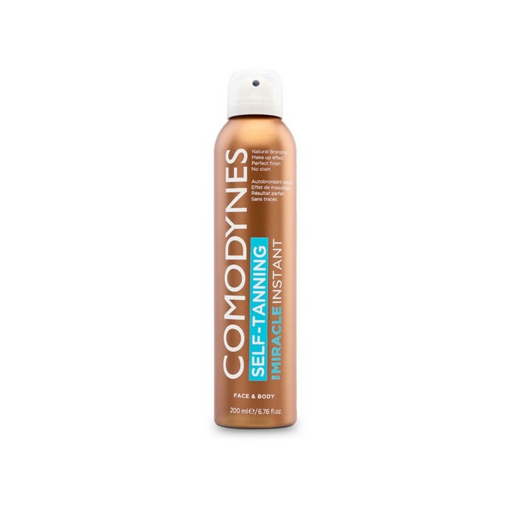 Se está à procura de um bronzeado natural com efeito de maquilhagem? Autobronzeador The Miracle Instant é o spray autobronzeador que lhe dará um acabamento perfeito sem manchar ao aplicar. Os pigmentos de maquilhagem castanhos vão lhe dar dar um tom de "férias" instantâneo e natural.