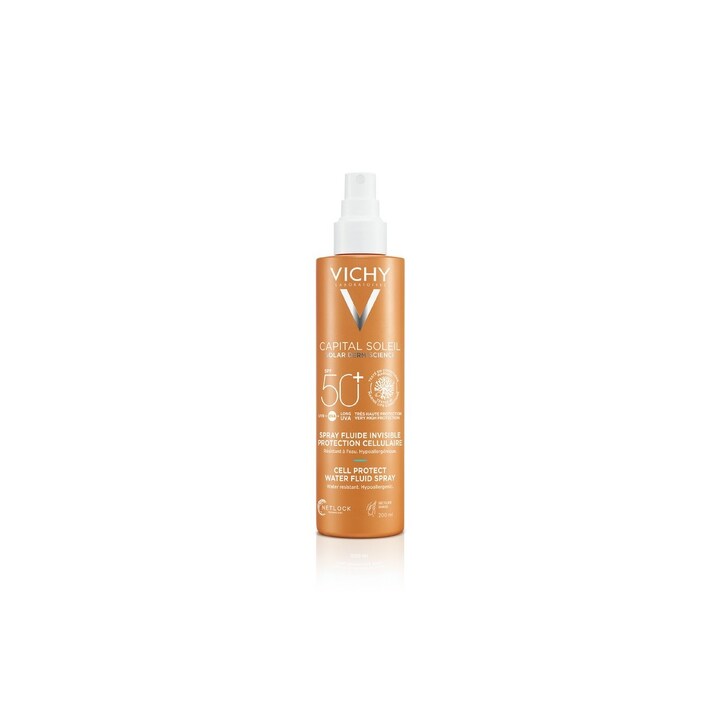Formulado com tecnologia inovadora, o spray solar anti desidratação com SPF50+ protege a pele contra a radiação UVB e UVA, mas também contra os diferentes fatores da praia: areia, água e sal. Para compensar a desidratação da pele causada pelo sol, areia, cor ou sal, a fórmula do leite inclui ácido hialurónico, que hidrata e preenche a pele por 24 horas. Também contém água mineralizante Vichy de águas vulcânicas que acalma, hidrata e fortalece a barreira cutânea. O seu confortável formato de spray e a sua textura leve fazem com que se misture perfeitamente com a pele e proporcione uma sensação de frescura na aplicação, com um acabamento suave, seco e não oleoso. Com eficácia clinicamente comprovada sob controle dermatológico, oferece 40 minutos de resistência à água, evita a aderência de areia e sal à pele, reforça a pele contra o vento e proporciona maior hidratação. É adequado para todos os tipos de pele e sua fórmula hipoalergénica reduz o risco de alergias.