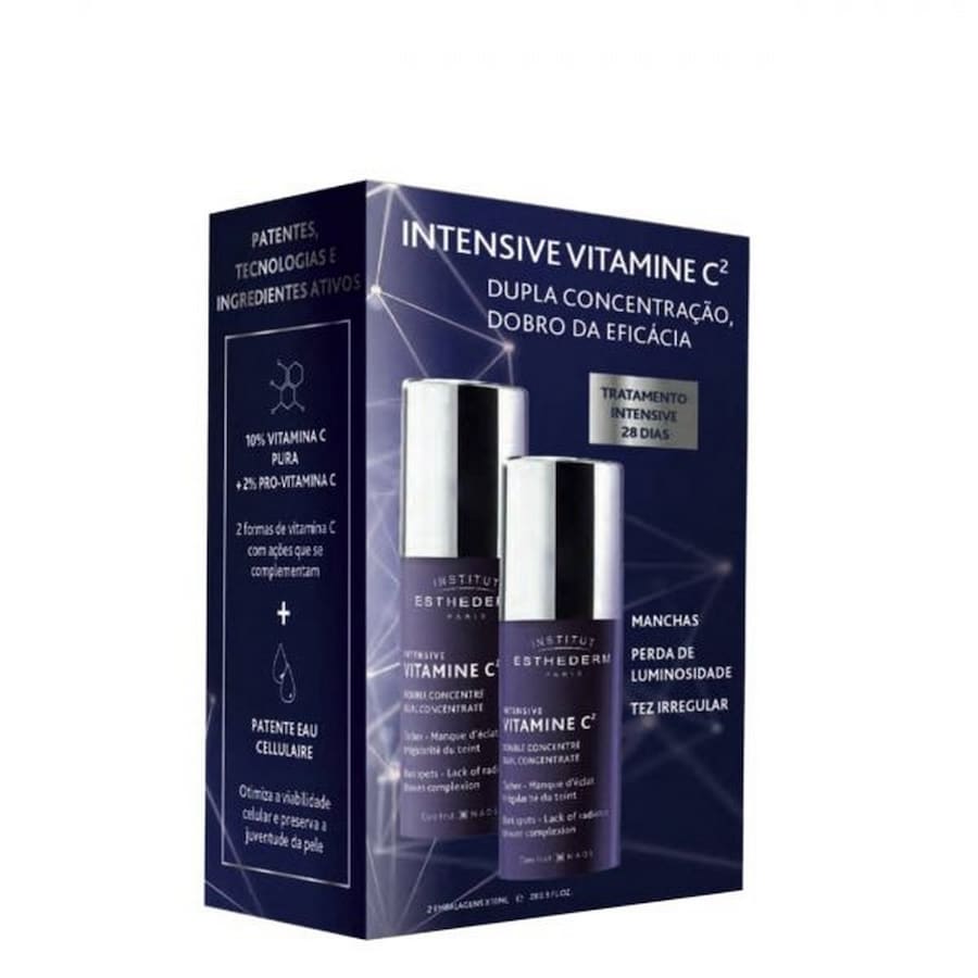 Tratamento intensivo de 28 dias, composto por dois séruns concentrados com as duas formas de Vitamina C com ação nas rugas, manchas escuras e falta de luminosidade.