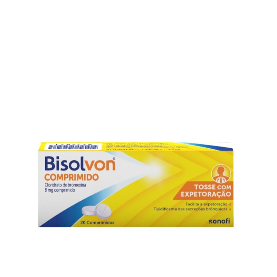 Bisolvon® (cloridrato de bromexina), adjuvante mucolítico do tratamento antibacteriano das infecções respiratórias em presença de hipersecreção brônquica. Precauções/contraindicações: gravidez, aleitamento, hipersensibilidade à composição, úlcera gastroduodenal, doença hepática e insuficiência renal, asma, lesões cutâneas, intolerância à galactose. Não associar com um antitússico nem com um secante de secreções. Pode haver um aumento no fluxo das secreções. Os comprimidos contêm lactose. Leia atentamente o folheto informativo. Em caso de agravamento ou persistência dos sintomas consulte o seu médico ou farmacêutico.
