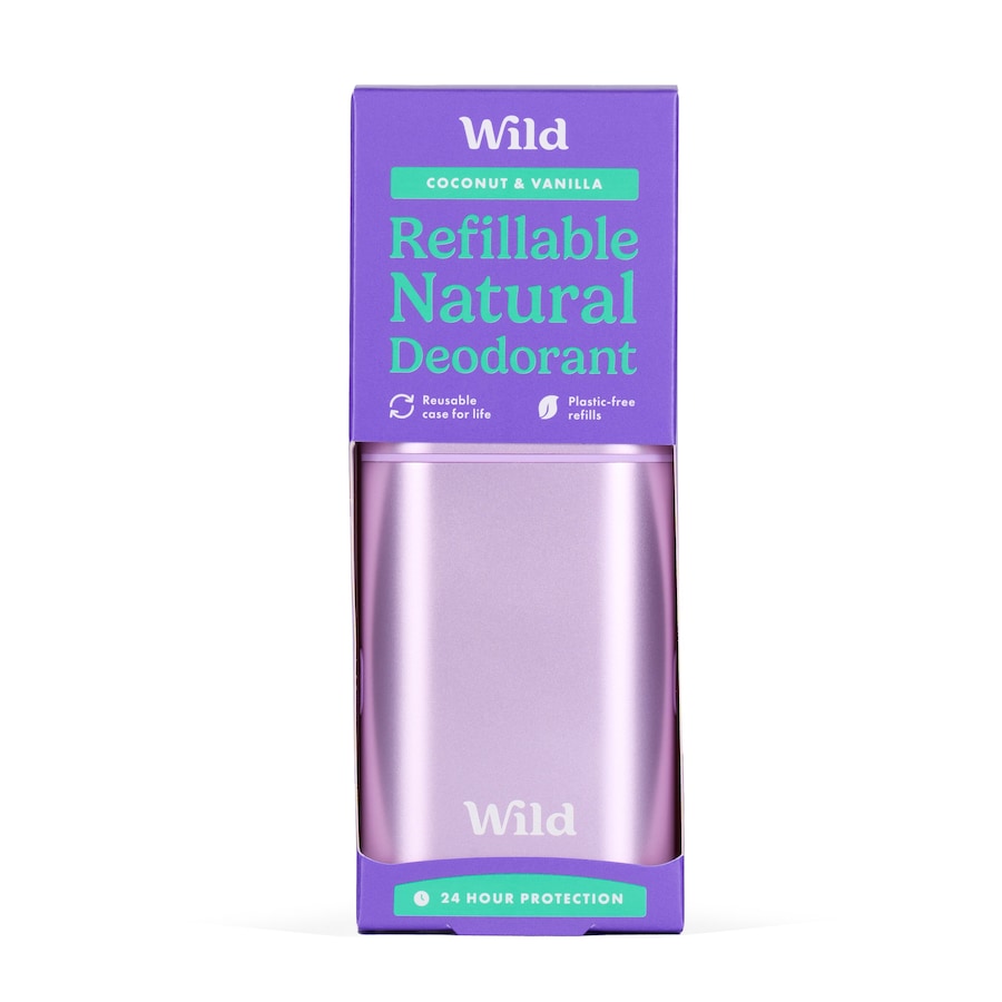 Wild, desodorizante natural, sem alumínio, 100% vegan e recarregável. Aroma de coco e baunilha. Reinventa a tua experiência no cuidado pessoal com os desodorizantes naturais Wild.
