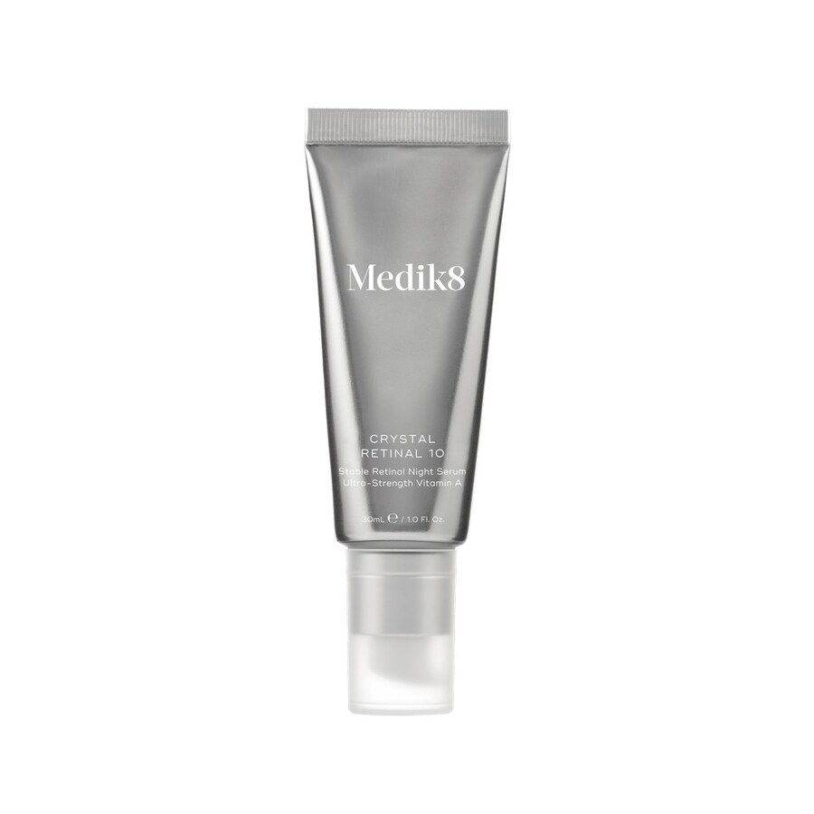 Descubra Medik8 Crystal Retinal 10, o derradeiro sérum de noite para uma renovação profunda da pele madura. Este sérum de vitamina A, com 0,10% de retinal estável, reduz as rugas, as manchas e a flacidez, proporcionando resultados visíveis em apenas 4 semanas. Formulado com retinal de alto desempenho, actua 11 vezes mais rapidamente do que o retinol clássico, aumentando a produção de colagénio e rejuvenescendo a pele. A sua textura sérum-creme, com uma cor pêssego natural, é facilmente absorvida e deixa um aroma reconfortante de baunilha e fava tonka. Ideal para quem procura reforçar os resultados do Crystal Retinal 6, este sérum de noite trata as rídulas, alisa a pele e combate as bactérias causadoras do acne.