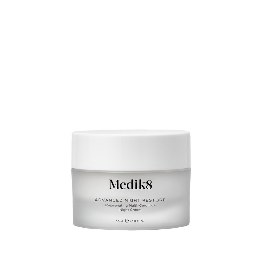 Descubra o Advanced Night Restore™, o creme de noite da Medik8 que actua como um poderoso creme antirrugas e rejuvenescedor. Em apenas 7 dias, alisa as rídulas e as rugas mais difíceis, deixando a pele suave e macia. Esta fórmula rica em ceramidas nutre profundamente e refirma visivelmente a tez enquanto dorme, proporcionando resultados rejuvenescedores notáveis e reforçando a barreira natural da pele. Repondo os lípidos essenciais perdidos ao longo do tempo, oferece o máximo conforto, preenchendo e reafirmando a pele. Concebido para ser utilizado após a vitamina A (retinol ou retinal) à noite, este hidratante possui propriedades antioxidantes, protectoras e reparadoras, ideais para mimar a sua pele enquanto descansa.