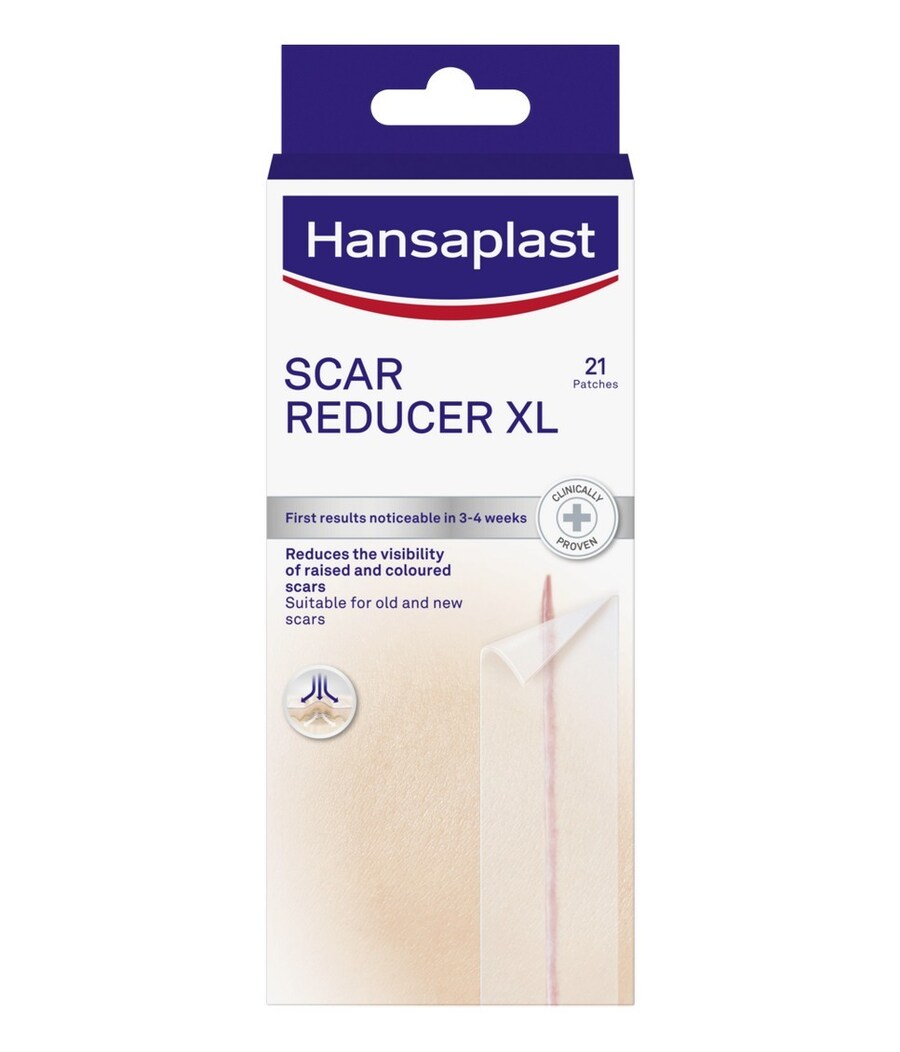 Penso transparente, tamanho XL, alisa e suaviza cicatrizes. Reduz visivelmente em 8 semanas as cicatrizes salientes e com cor ou quelóides. Material flexível, respirável e à prova de água. Adequado no cuidado pós-operatório. Pode ser utilizado a partir dos 3 anos de idade.