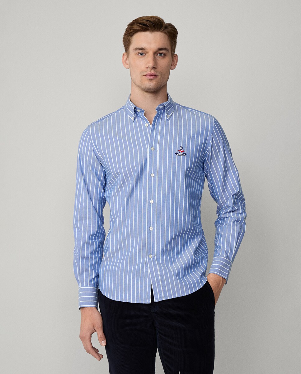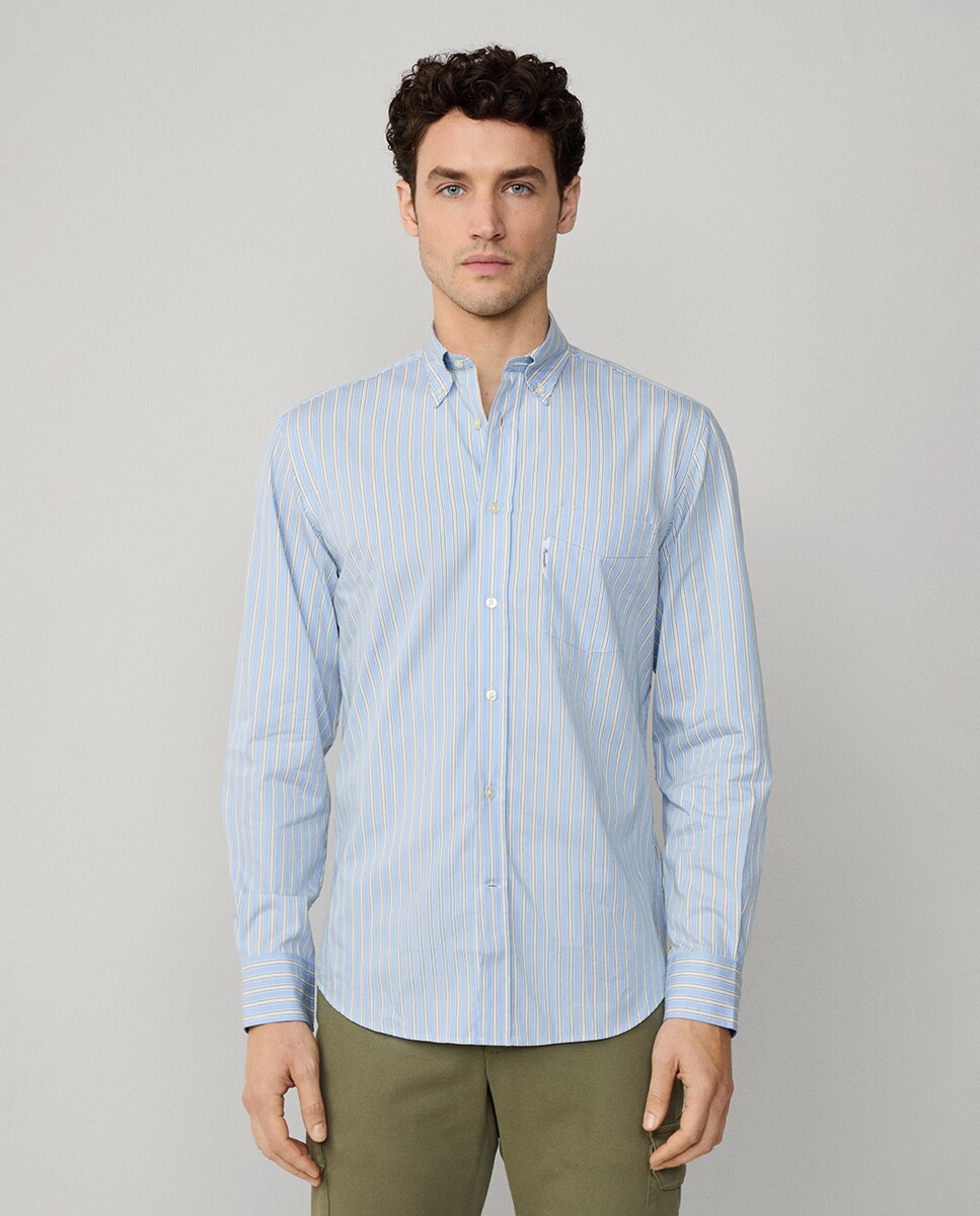 Camisa Fit Club de Popelina de Algodão com Várias Riscas