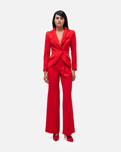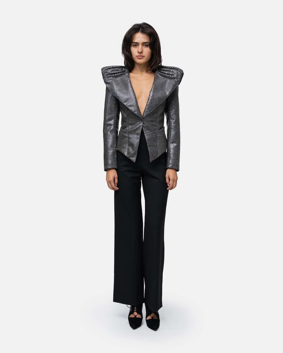 Blazer cintado assimétrico gola larga drapeada