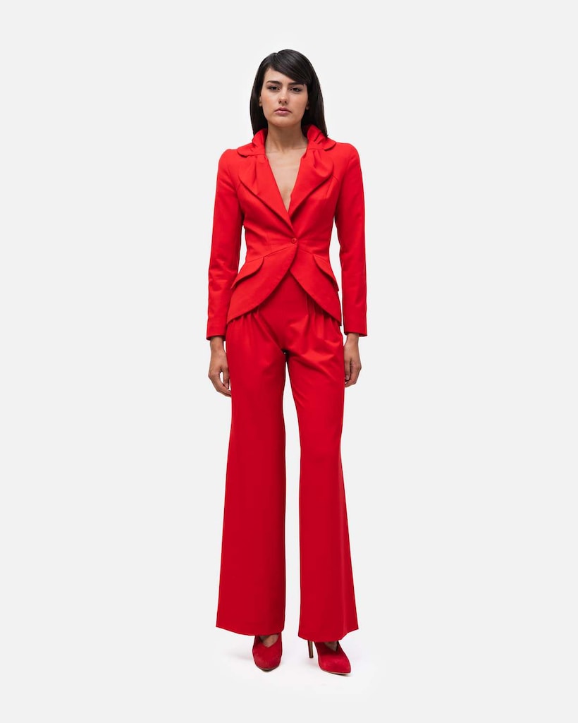 Calças cintura subida e delineada com perna larga - Bordeaux