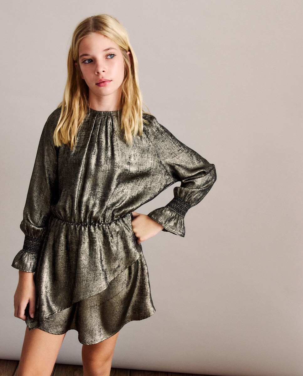 Vestido de Festa Metalizado com Manga Comprida