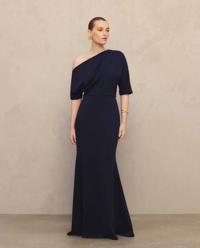 Vestido Comprido com Top Assimétrico em Cetim