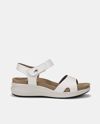 Sandálias Rasas com Tira Larga, Pulseira pelo Tornozelo com Fecho Aderente e em Pele