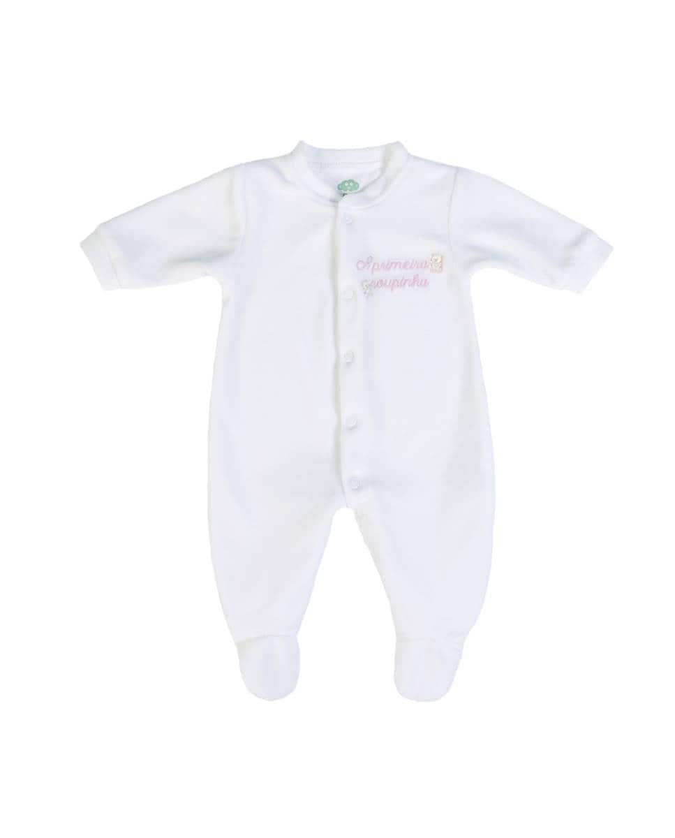 Babygrow "A Primeira Roupinha" em veludo orgânico