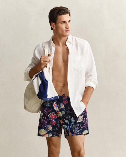 Calções de Banho com Ajuste de Cordão e Micro Estampado de Desenhos
