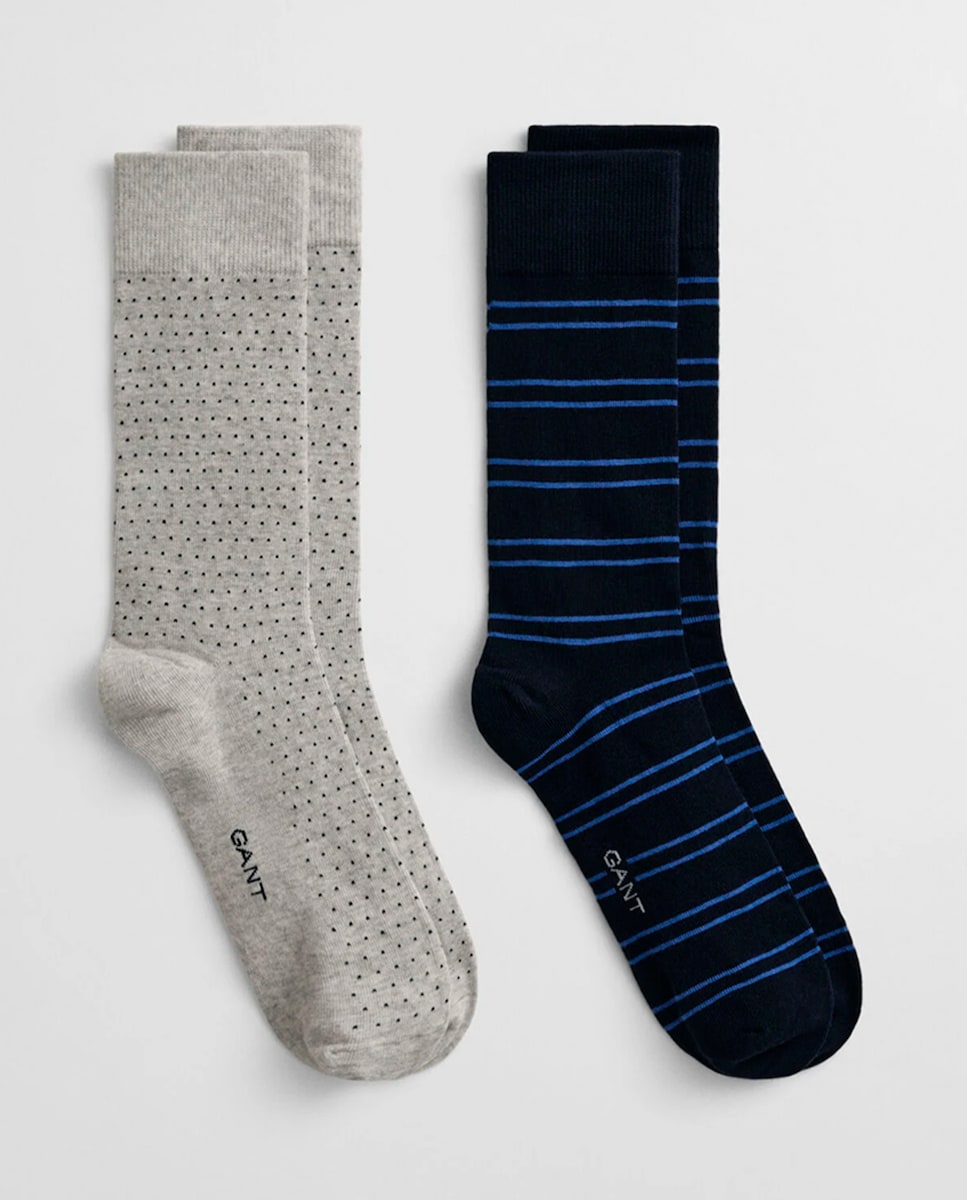 Pack de 2 Pares de Meias de Algodão com Micro Estampados e Riscas