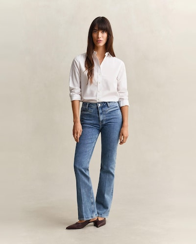 Jeans À Boca de Sino com Monograma de Cintura Subida