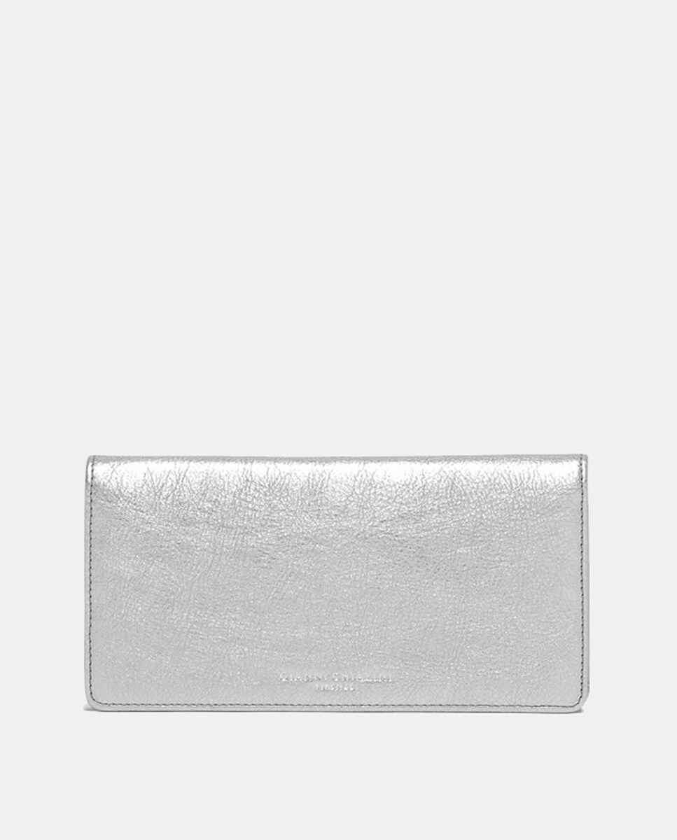 Gianni ChiariniCarteira Sofisticada e Confortável em Pele Laminada - Prateado Várias Ranhuras e CompartimentosADICIONAR