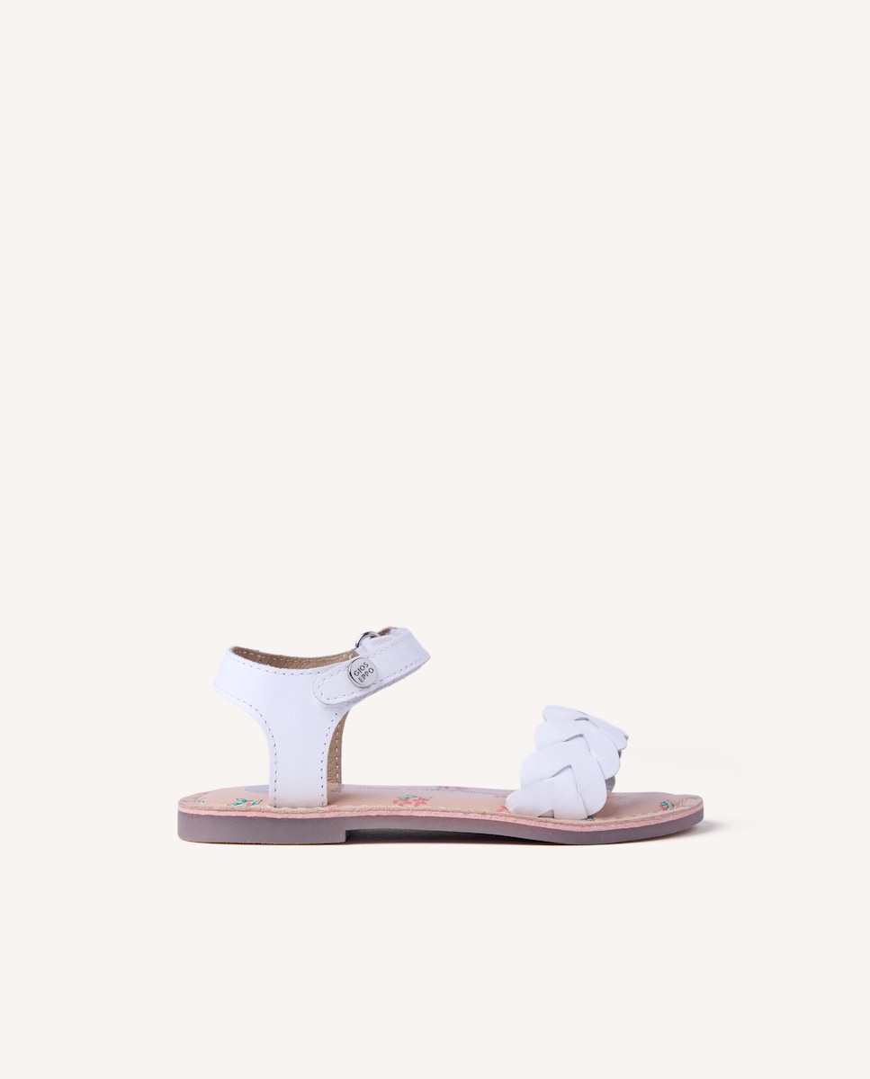 GioseppoSandálias Abertas Infantil de Pele Monocolor com Entrançado e Estampado de Flores na Palmilha2 CoresAdicionar