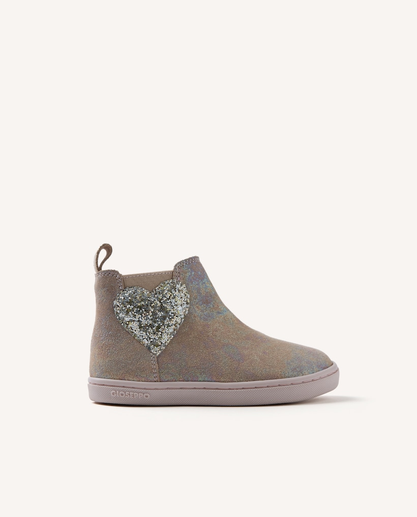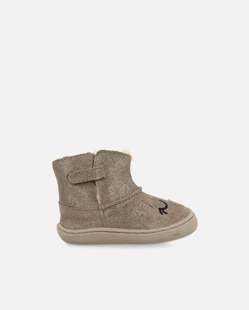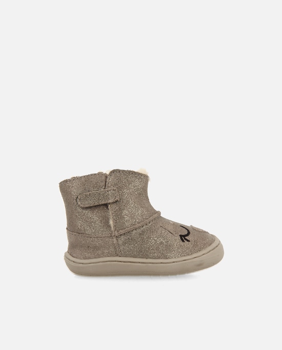 • Imagem 0 de Botins Infantil Barefoot em Camurça com Brilho e Fecho Zip no Lateral Interno
