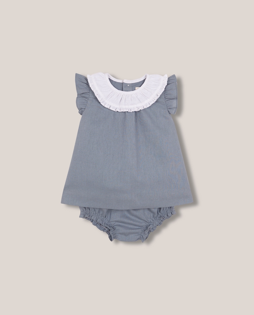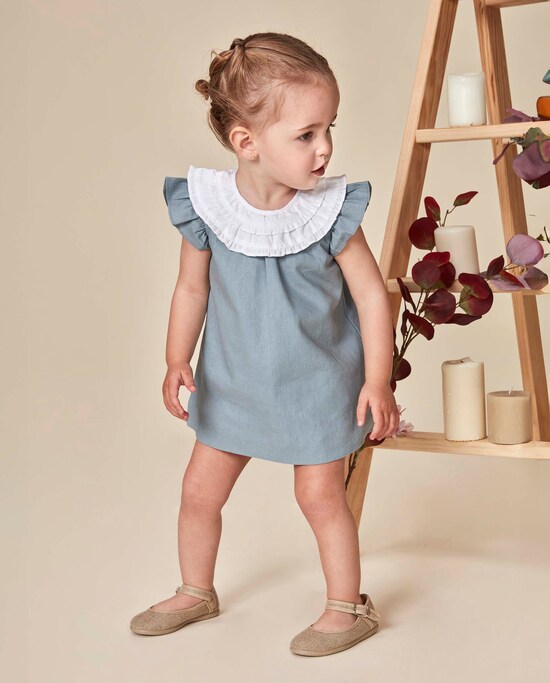 Vestido para Bebé em Linho com Gola em Contraste