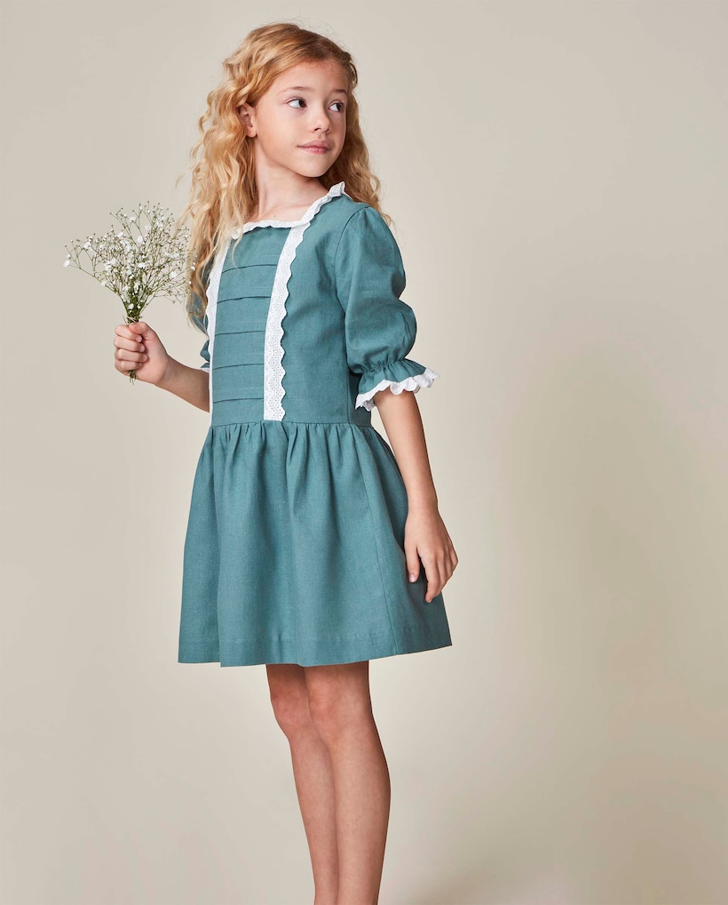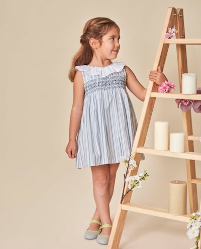 Vestido Infantil com Alças Abotoadas e Folho na Cintura