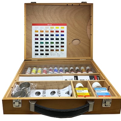 Caixa de Madeira com 12 Tubos de Óleo e Auxiliares 20 ml - Multicolor