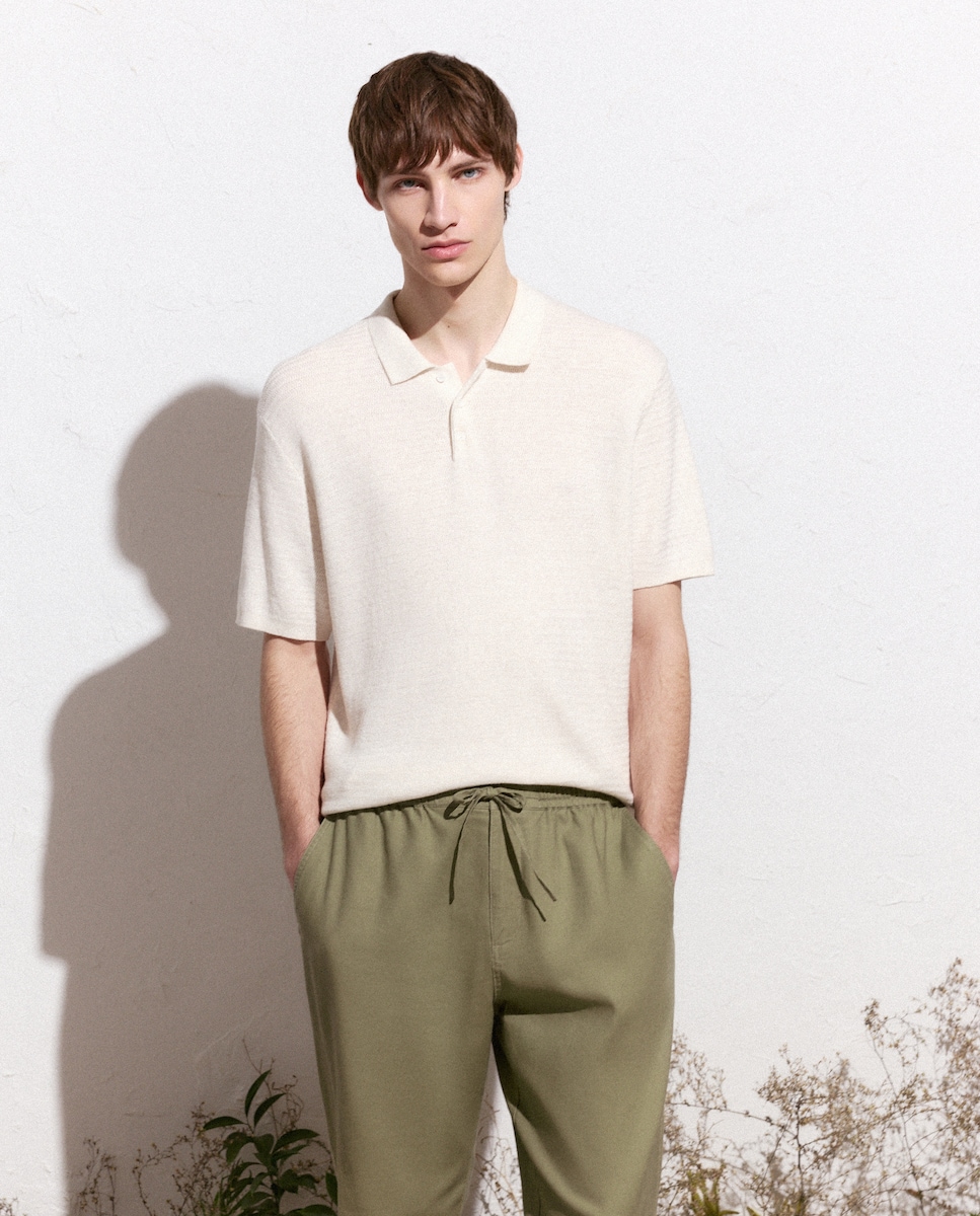 Polo de Tricot com Manga Curta e Estrutura