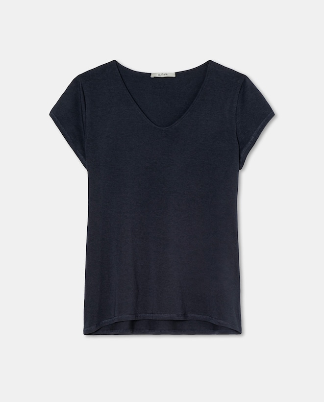 Vestido Midi com Manga 3/4 e Decote em Bico