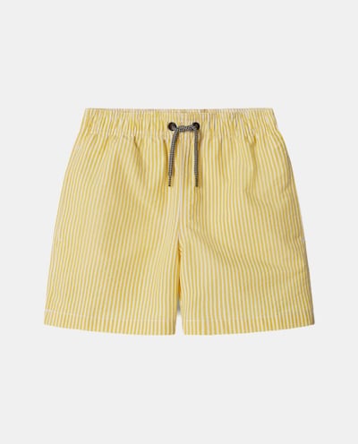 Fato de Banho Seersucker com Cintura Elástica, Forro em Contraste e Bolsos
